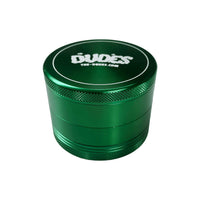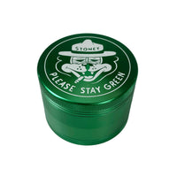 Bottle green grinder with Stay Green artwork by mcbess.